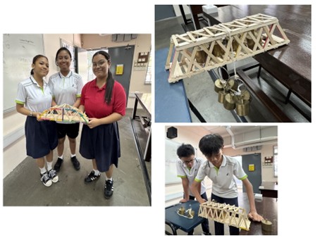Students applied the concepts that they had learnt in class to design and make a model bridge that can satisfy a given set of criteria. The competition offers the students a “real-world” experience and they got to witness how their bridges fared during the testing process.