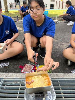 (Image above): Meridian NCDCC cadet trying outdoor cooking at a combined East Zone Schools Outdoor Cooking Competition held at Pasir Ris Secondary School.